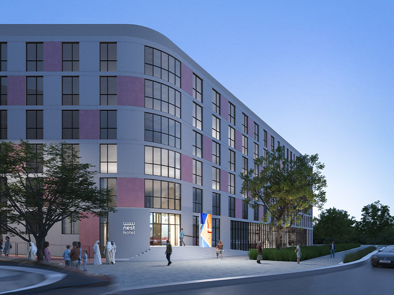 Nest Hotel Aljada is a vibrant new hotel experience designed for modern explorers, digital nomads, and connected communities. Located in the heart of Sharjah’s fastest-growing destination, the hotel features 395 smart, design-led rooms and a lifestyle built around simplicity and social connection. Whether you're here for business, campus life, or a weekend getaway, Nest is your space to stay, work, and play — your way.